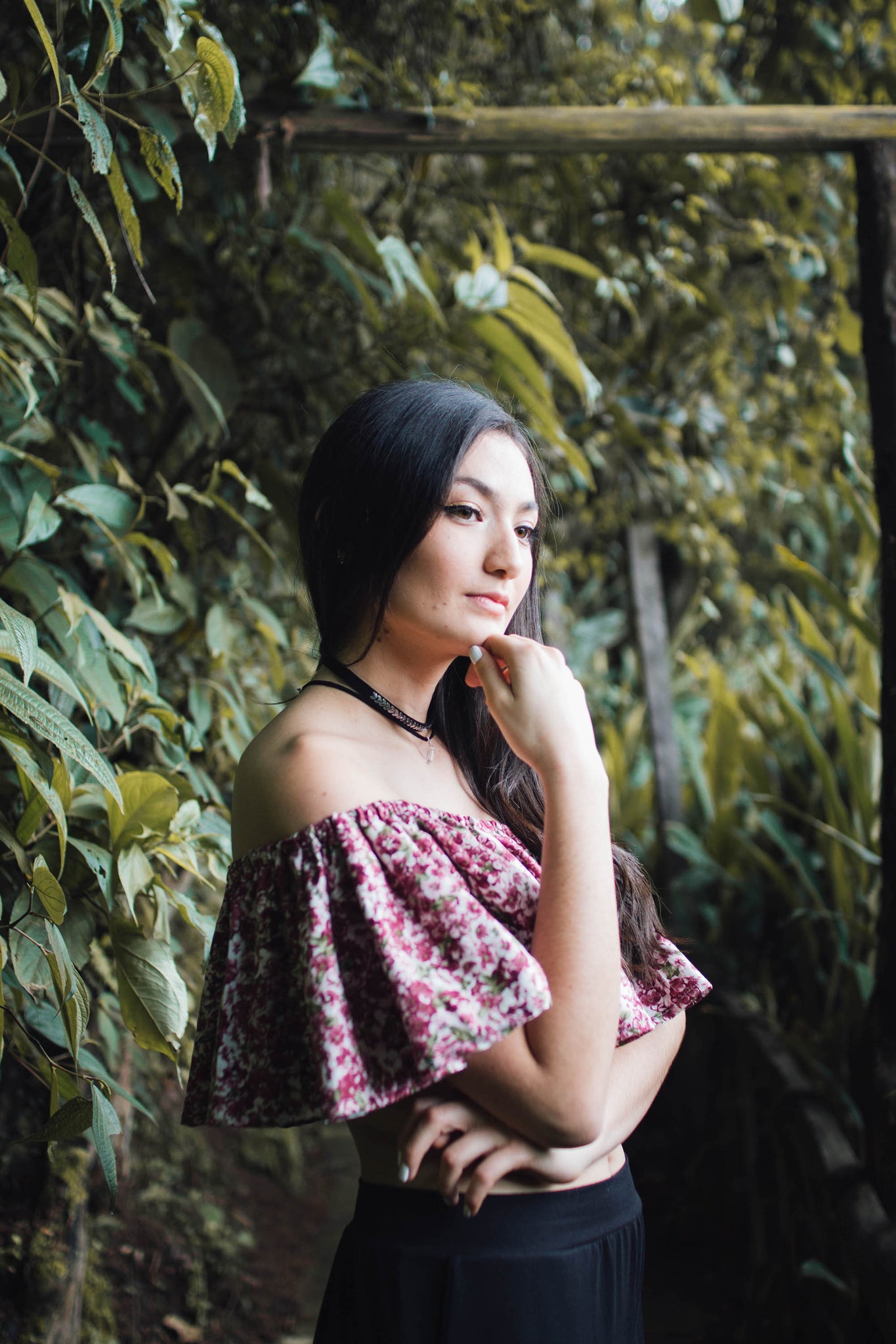 Croptop floreado, con vuelo. Se puede usar con un solo hombre descubierto o como un top sin mangas.