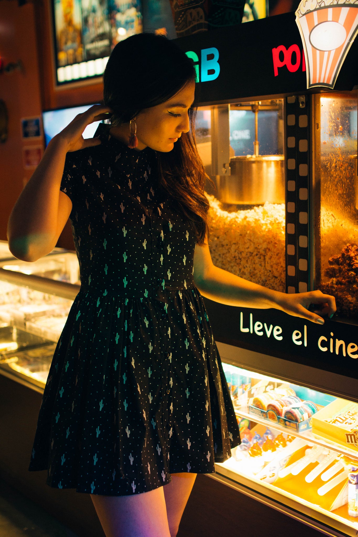 Vestido con botones, estampado de cactus
